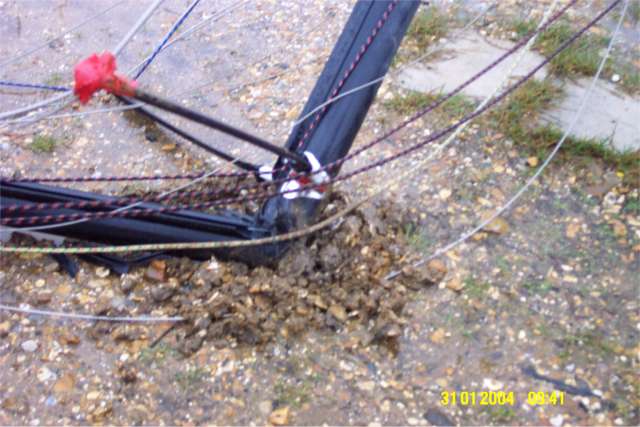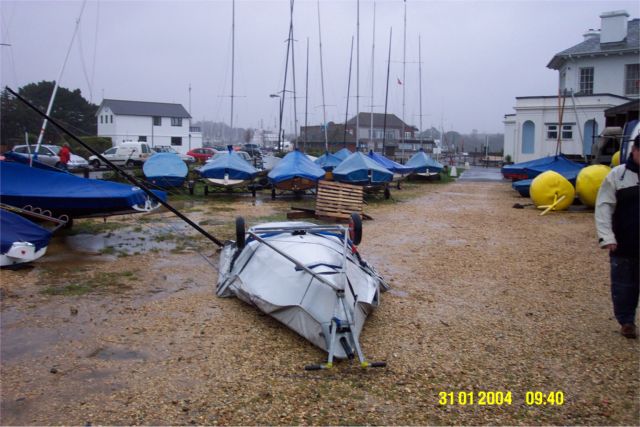 31 January 2004 - With winds gusting over 40 knots there was some damage to boats in the LTSC dinghy park